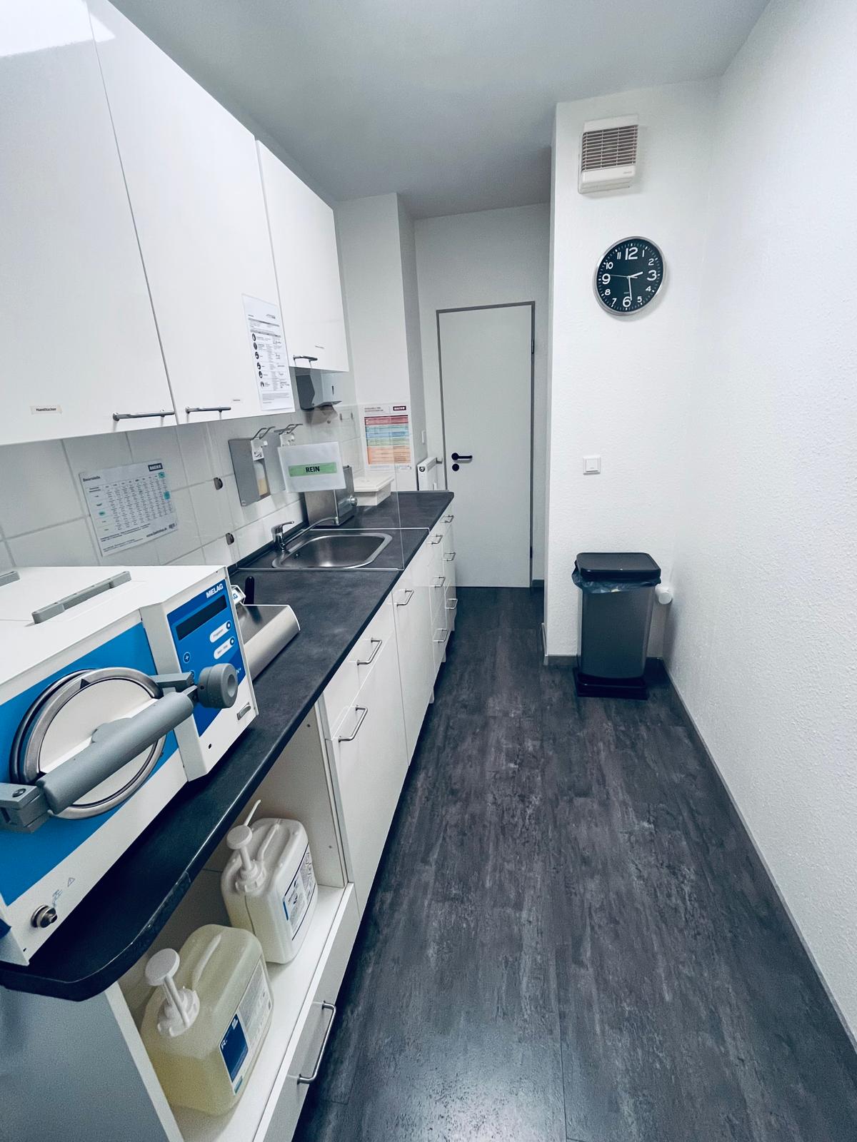 Händedesinfektion, Desinfektion und Sterilisation der Instrumente mit dem Autoklav-Verfahren sind bei jedem Patienten Standard. So wird die Übertragung von Bakterien, Pilzen und Viren verhindert.